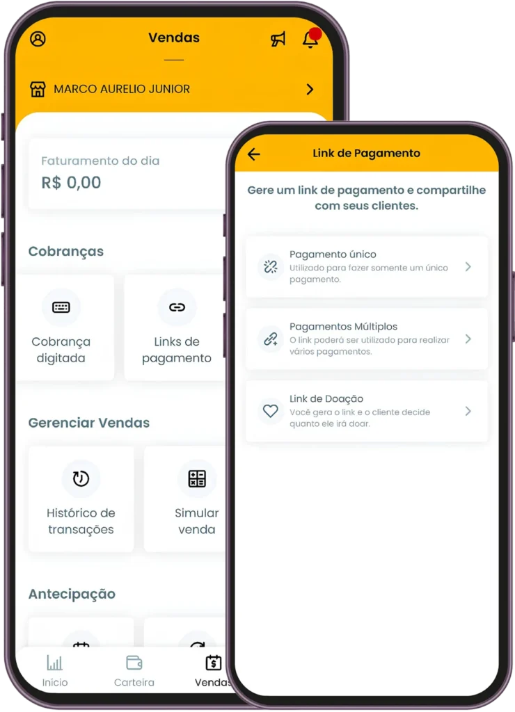Com o Link de Pagamento, você vende direto pelo WhatsApp, Instagram, e-mail ou onde quiser. Mais liberdade, rapidez e dinheiro caindo na hora. Simples, seguro e sem maquininha!